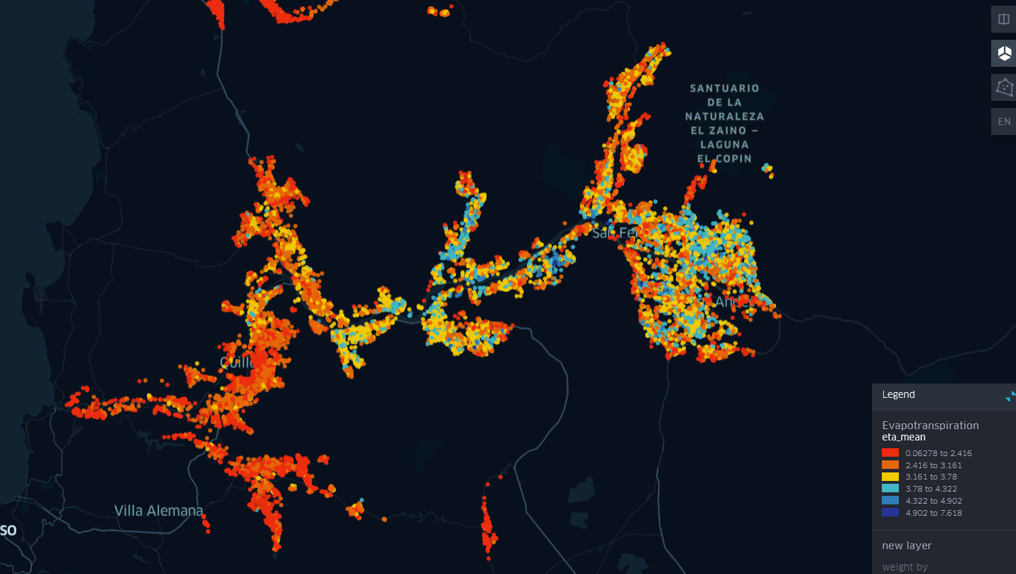 Image: our estimates of water consumption at the farm level, for the Aconcagua River basin, water flows from the Andes (right) to the Pacific Ocean (left).